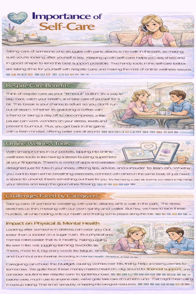 Taking care of someone who struggles with panic attacks is no walk in the park, so making sure you’re looking after yourself is key. Keeping up with self-care helps you stay sharp and in good shape to lend the best support possible. Two handy tools in this self-care toolbox are taking time for yourself with respite care and making the most of online wellness resources.