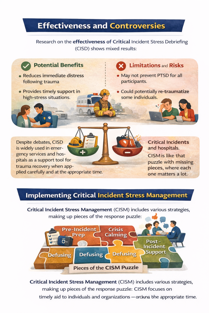 There’s some back-and-forth on how well CISD really works. Research is like a mixed bag–some say it’s great for reducing stress after tough times, while others think it’s not a one-size-fits-all fix.