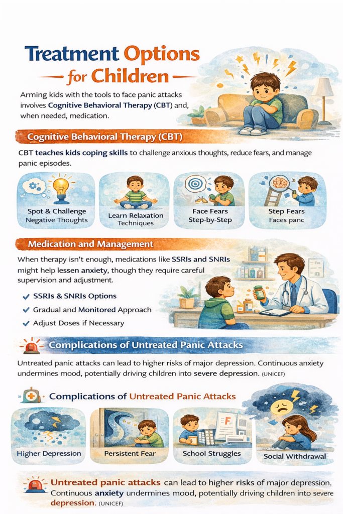 By blending CBT with medication, when it seems right, children dealing with panic can get a well-rounded treatment plan that’s just for them. Catch it early, tailor it to each kid, and the difference can be night and day, stopping untreated panic attacks from causing more trouble down the line (AACAP).