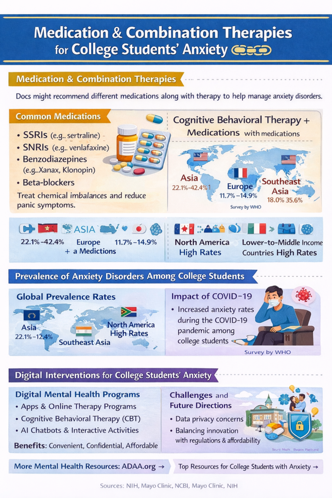 In chatting with folks worldwide, organizations like the World Health Organization have discovered that anxiety is sort of the college students’ unwanted roommate. Across 21 countries and over 1500 students, anxiety disorders popped up as the common culprit, with rates generally bouncing between 11.7% to 14.7%. Dive into places like Asia, Europe, and the Southeast Asian regions, and you see numbers fluctuating between 18% and 42.4%. North America and some lower-to-middle income countries aren’t far behind, sporting sky-high rates as well. (National Center for Biotechnology Information)