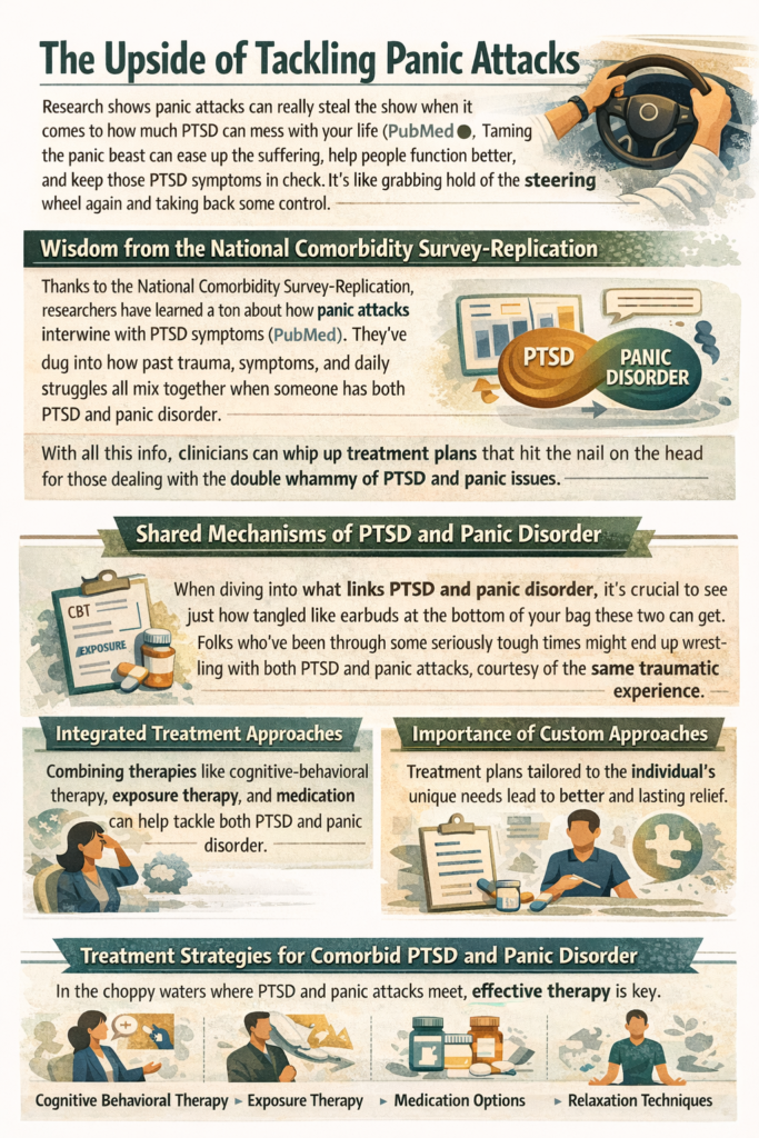 Thanks to the National Comorbidity Survey-Replication, researchers have learned a ton about how panic attacks intertwine with PTSD symptoms (PubMed). They’ve dug into how past trauma, symptoms, and daily struggles all mix together when someone has both PTSD and panic disorder. With all this info, clinicians can whip up treatment plans that hit the nail on the head for those dealing with the double whammy of PTSD and panic issues.