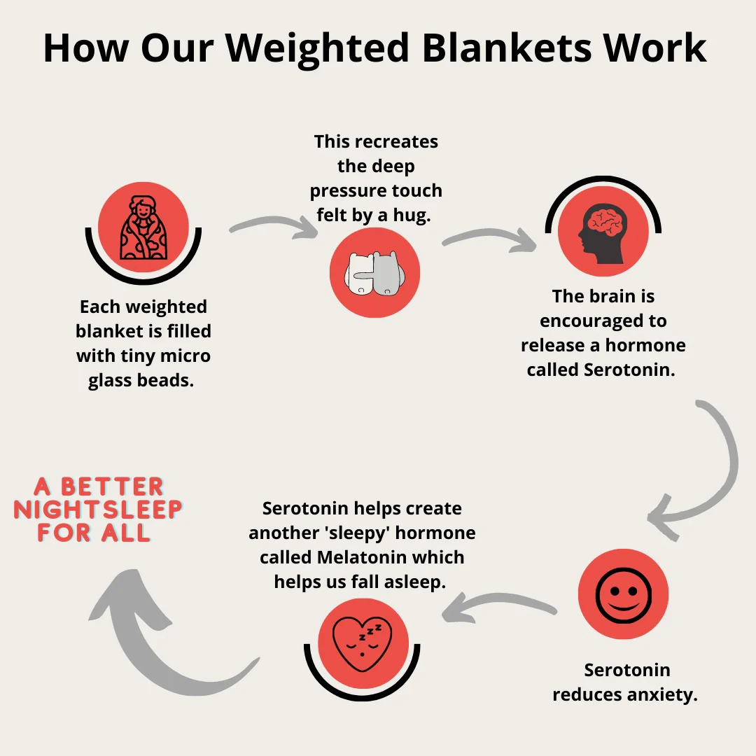 Deep Pressure Stimulation (DPS) is pretty much what happens when a weighted blanket gives you a gentle squeeze, kinda like a hug. This snug feeling boosts the production of serotonin, that handy brain chemical that makes you feel relaxed and cheerful. Plus, it’s believed to jolt up oxytocin levels—the ‘cuddle hormone’—which wraps you in a comfy and cozy feeling.