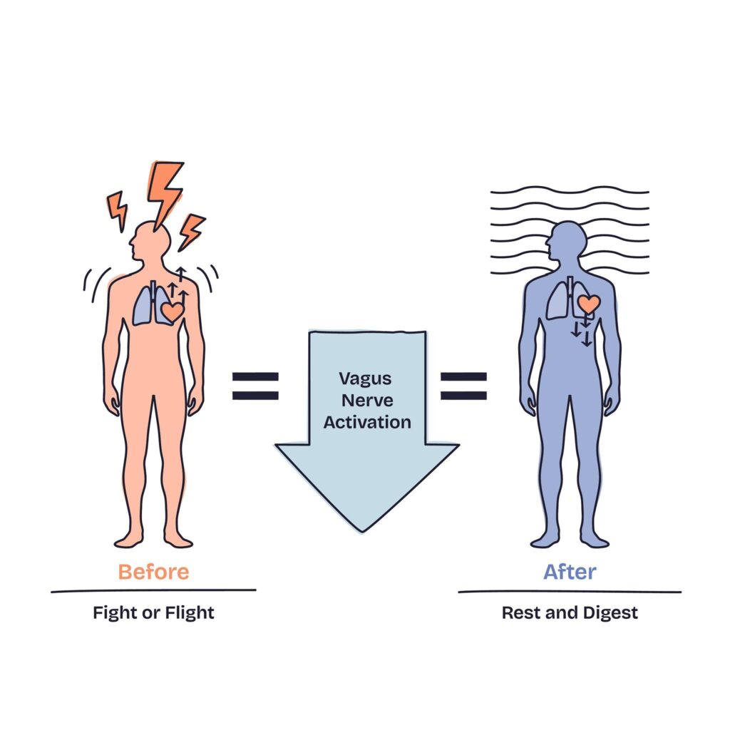 Simple breaths, like the long exhale or belly breathing, tap into the vagus nerve, that magic string that beckons calm and quiet. Adding Pranayama to your routine is like giving yourself a reset button to better handle whatever life throws your way.